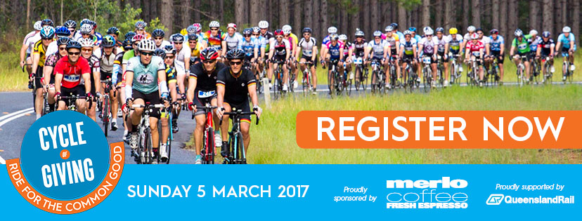 The annual Cycle of Giving fundraising ride is on March 5th 2017, and this year our goal is to raise $200,000. Register now to ride 100km, 65km or 25km on one of the most beautiful bike rides through South East Queensland, with starting locations from Landsborough, Caboolture and Redcliffe.